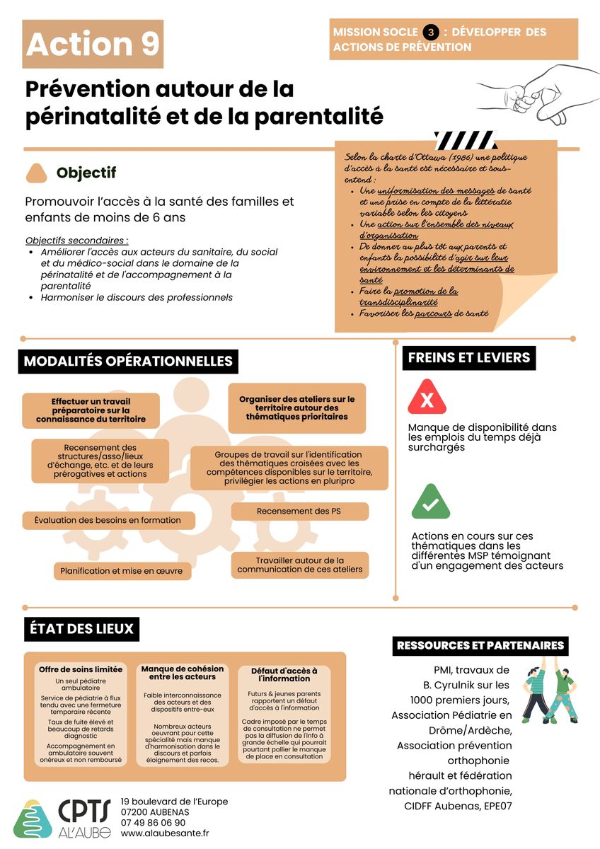 - Réaliser un travail préparatoire sur la connaissance du territoire en terme d'offre de soins/accompagnement spécifique à la périnatalité/parentalité