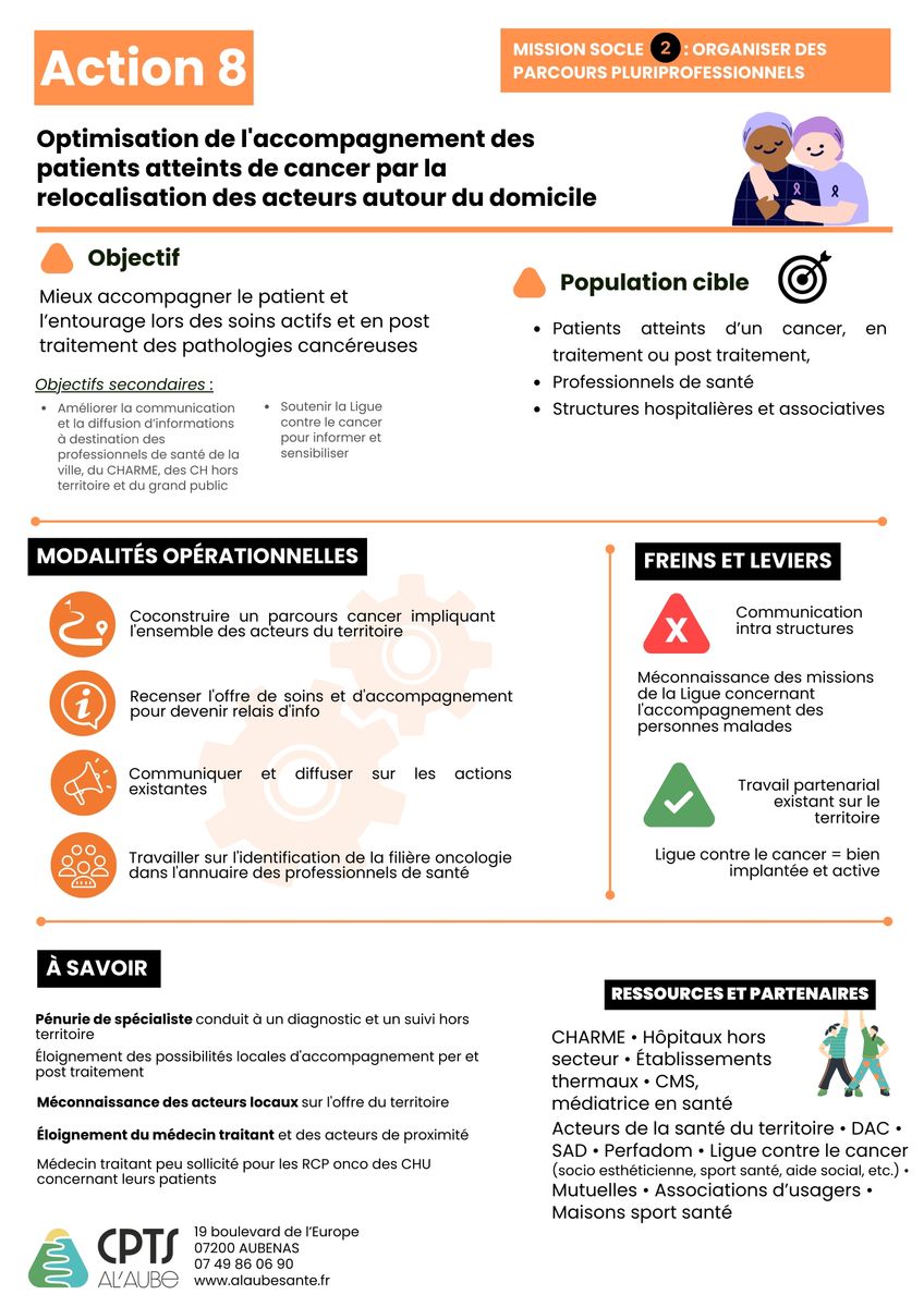 - Formalisation d'un parcours d'accompagnement des patients atteints d'un cancer (→ Groupe de travail !!!).